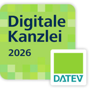 Zum siebten Mal in Folge wurden wir auch für das Jahr 2025 mit dem Label Digitale DATEV-Kanzlei ausgezeichnet. Die Vergabe ist an jährlich neu definierte Kriterien gebunden. Über das DATEV Digitalisierungs-Cockpit haben wir unseren individuellen Digitalisierungsgrad berechnen lassen und konnten weiterhin alle Kriterien zum Erhalt des Labels erfüllen bzw. optimieren.
